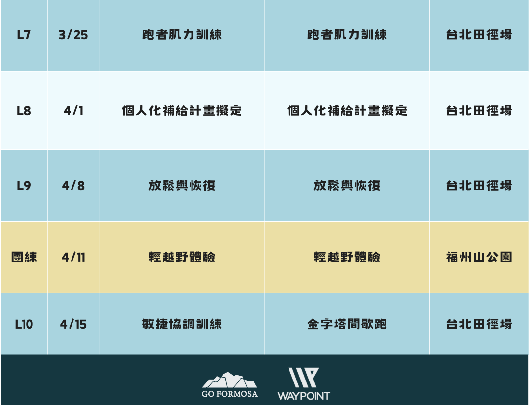 10堂課+2次團練+10週線上課表,循序建構良好跑動經濟性!