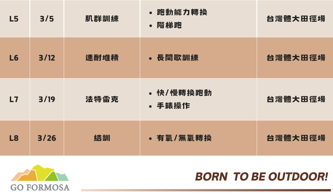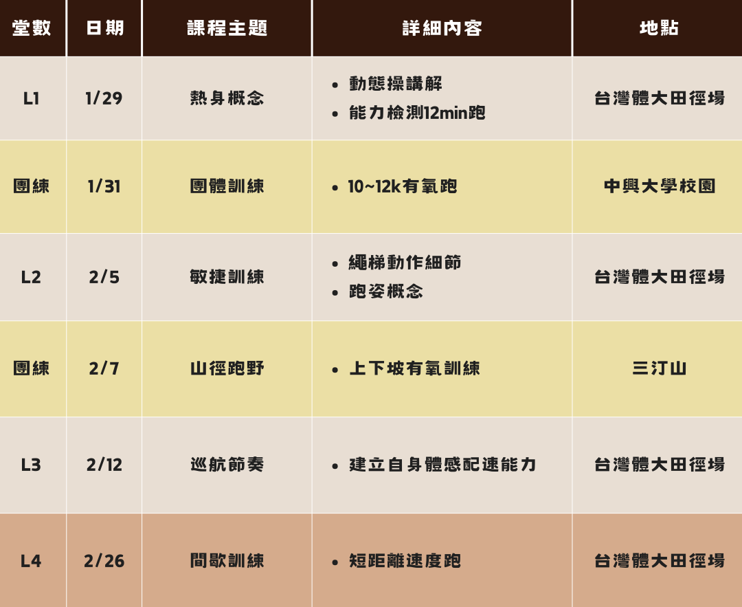 8堂課+2次團練+8週線上課表,循序建構良好跑動經濟性!