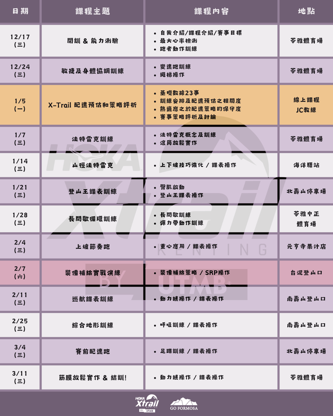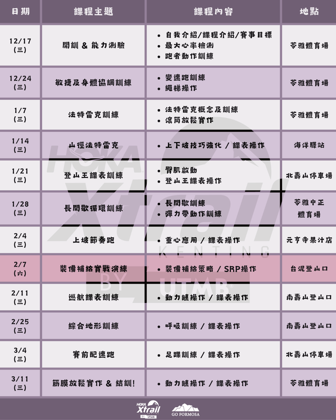 《本期越野跑常訓班將針對Xtrail Kenting by UTMB賽事做專項化訓練,一起在賽道上用溫度跑出高度!》