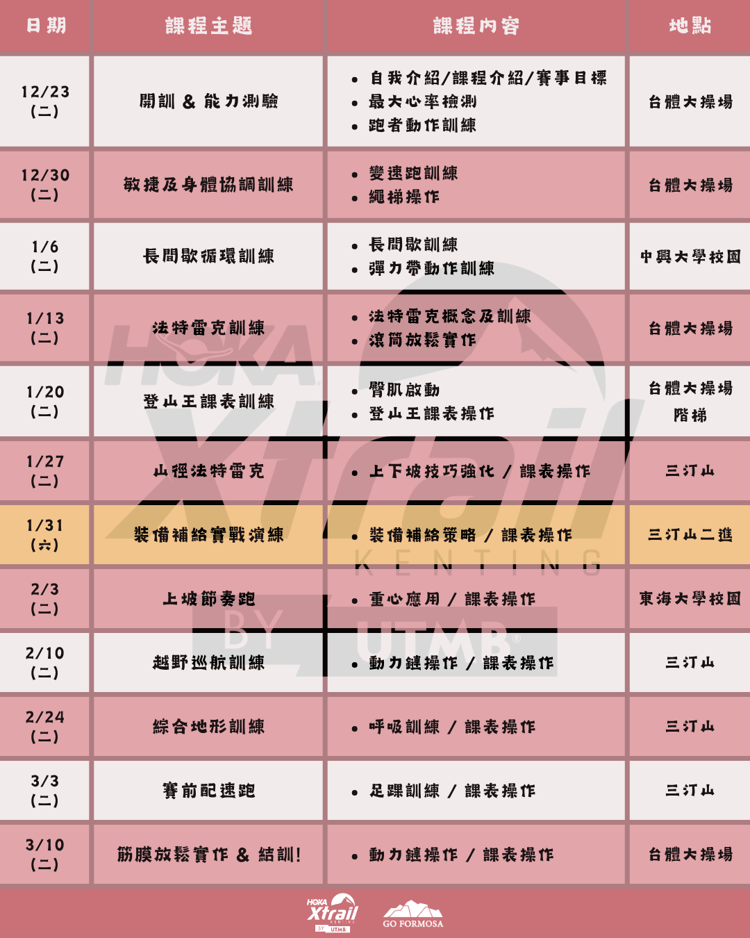 《本期越野跑常訓班將針對Xtrail Kenting by UTMB賽事做專項化訓練,一起在賽道上用溫度跑出高度!》